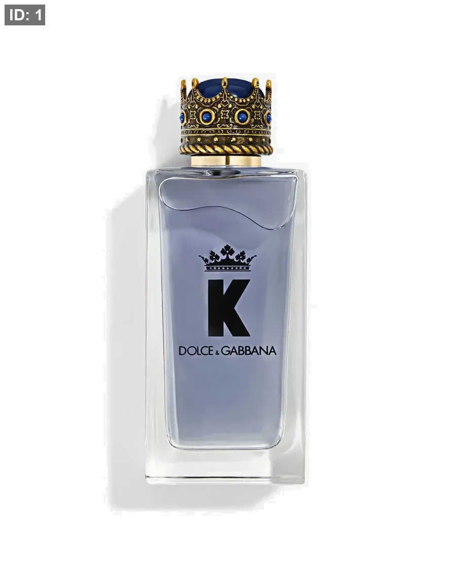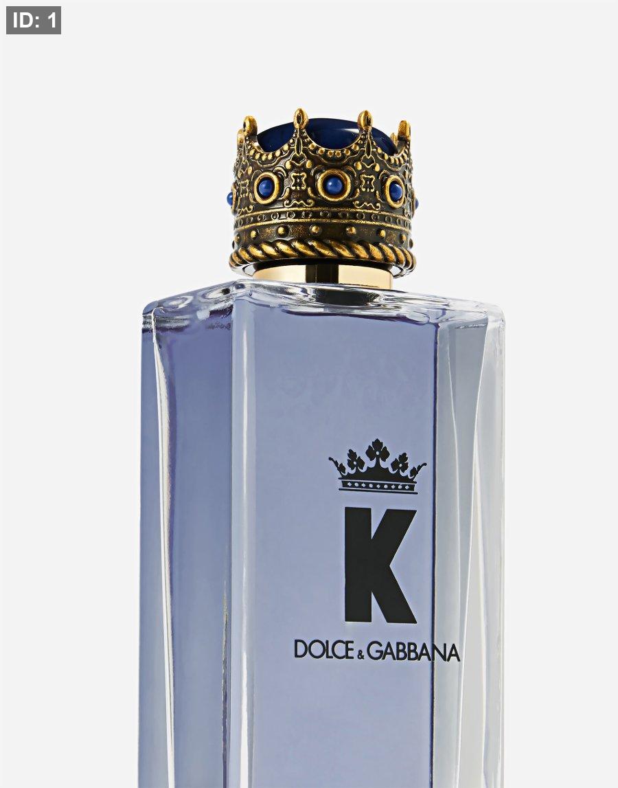 تم تزيين الشكل الهندسي لزجاجة ماء تواليت K من Dolce&Gabbana في الأعلى بتاج. تم تزيين الغطاء بأصباغ ذهبية عيار 24 قيراطًا وقبة من اللازورد الأزرق، باستخدام عملية تعيد تكوين الرخام الطبيعي للحجر، مما يجعل كل قطعة فريدة من نوعها.