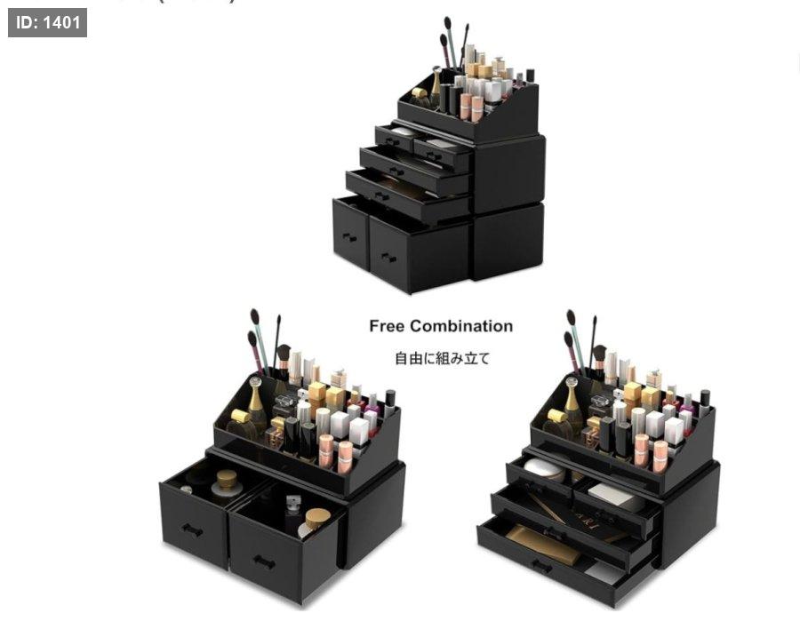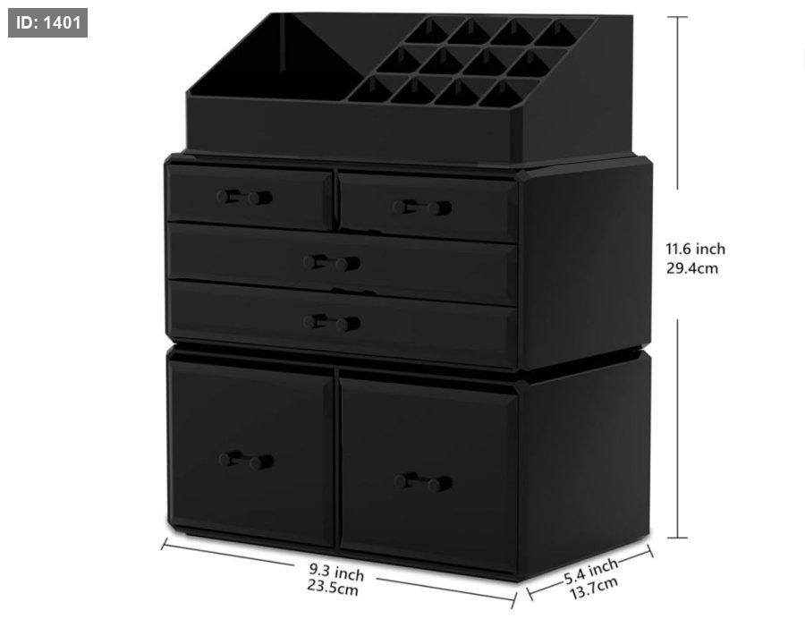 صندوق تخزين مستحضرات التجميل المصنوع من الأكريليك باللون الأسود قابل للتكديس مع رف تصنيف منتجات العناية بالبشرة وأحمر الشفاه