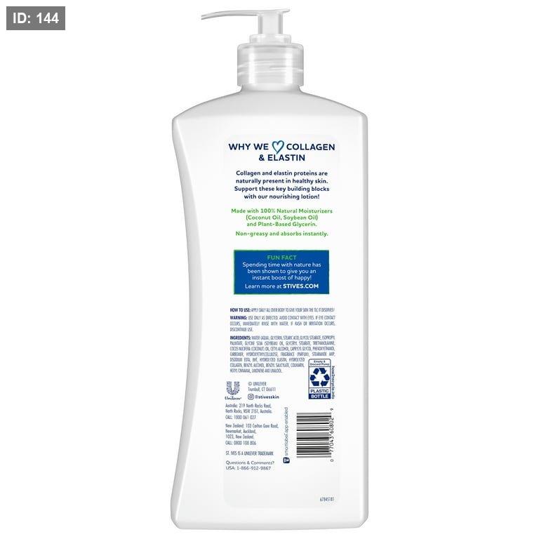 لوشن للجسم من ماركة St.Ives، تركيبة خفيفة غنية ببروتينات الكولاجين والايلاستين التي تزيد من مرونة البشرة، يرطب البشرة بفعالية لملمس ناعم وترطيب يدوم طويلاً.