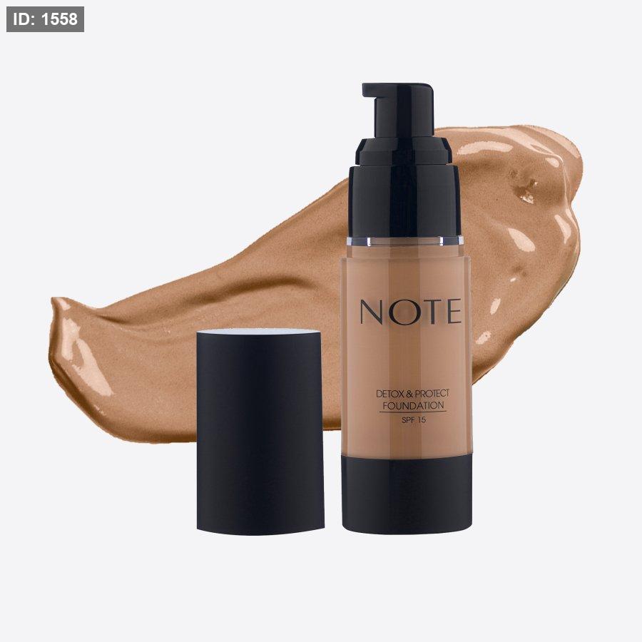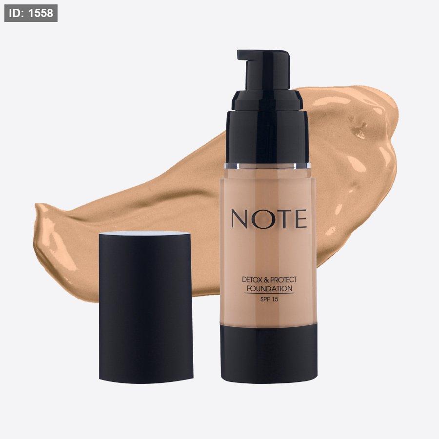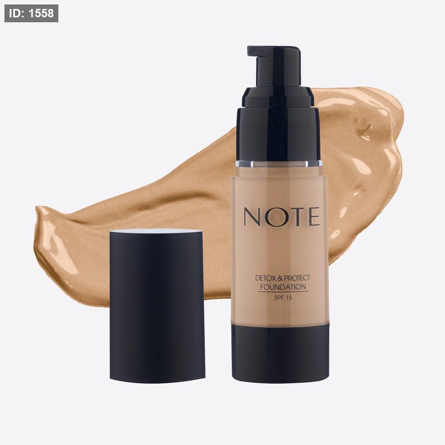 يوفر كريم الأساس Note Detox and Protect الغني والكريمي تغطية متوسطة قابلة للبناء إلى عالية ولمسة نهائية حريرية. تهدف التركيبة الغنية بمضادات الأكسدة القوية مثل مستخلص الخميرة وزيت اللوز الحلو وفيتامين E إلى حماية البشرة من العوامل البيئية الضارة التي يمكن أن تؤدي إلى شيخوخة الجلد المبكرة. مع عامل حماية من الشمس SPF 15 لمزيد من الحماية.