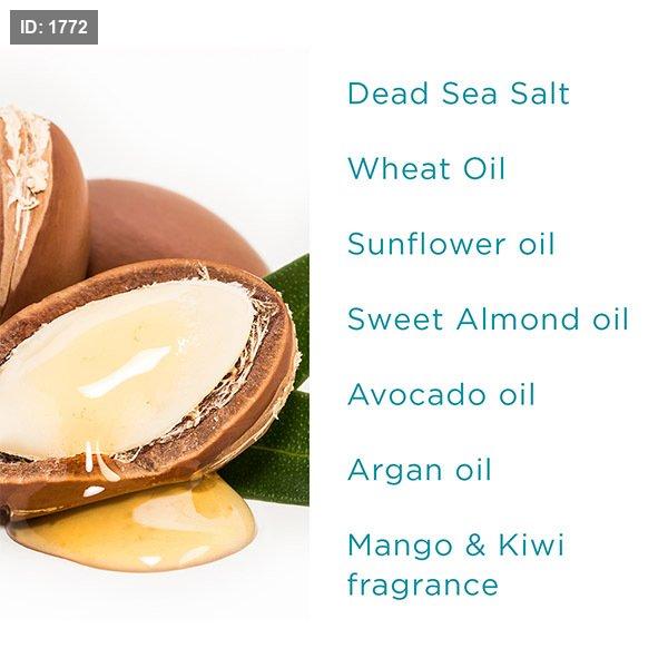 مقشر ملح عضوي ومغذي ومقشر للبشرة بنسبة 100%، غني بالمعادن المنشطة بشكل طبيعي، ممزوج بالزيوت الطبيعية لجميع أنواع البشرة،