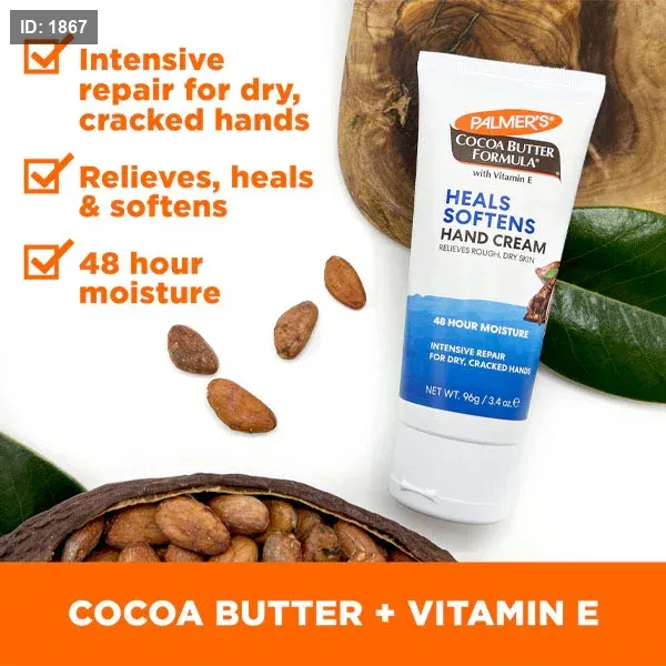 يشفي وينعم البشرة الخشنة والجافة باستخدام زبدة الكاكاو الطبيعية وفيتامين E للحصول على بشرة أكثر صحة.
