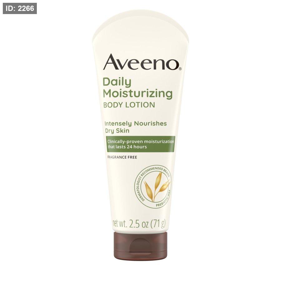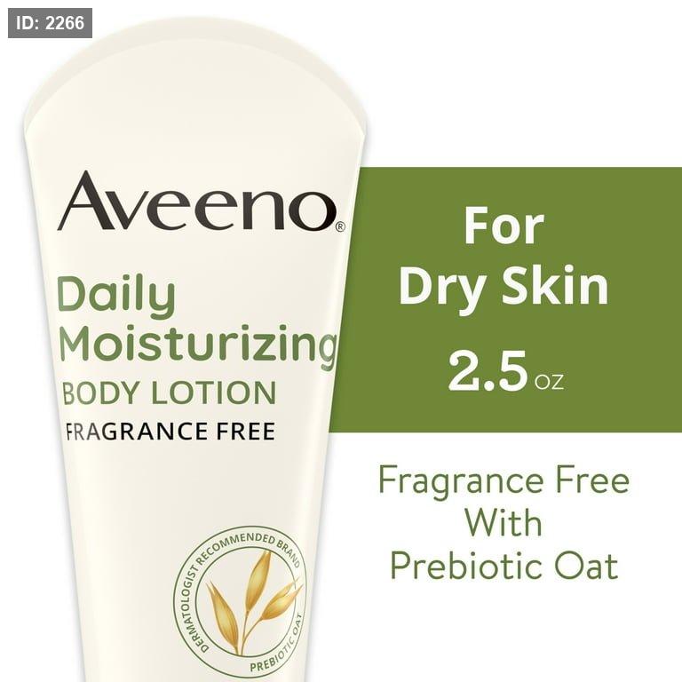 Aveeno Daily Moisturizing Lotion with Oat for Dry Skin لوشن مرطب يومي مصمم خصيصًا لترطيب البشرة الجافة والعناية بها بفضل تركيبته اللطيفة والغنية بالشوفان الطبيعي.ياتي بحجم 2.5 اونصة مما يجعله خيارًا عمليًا وسهل الحمل.