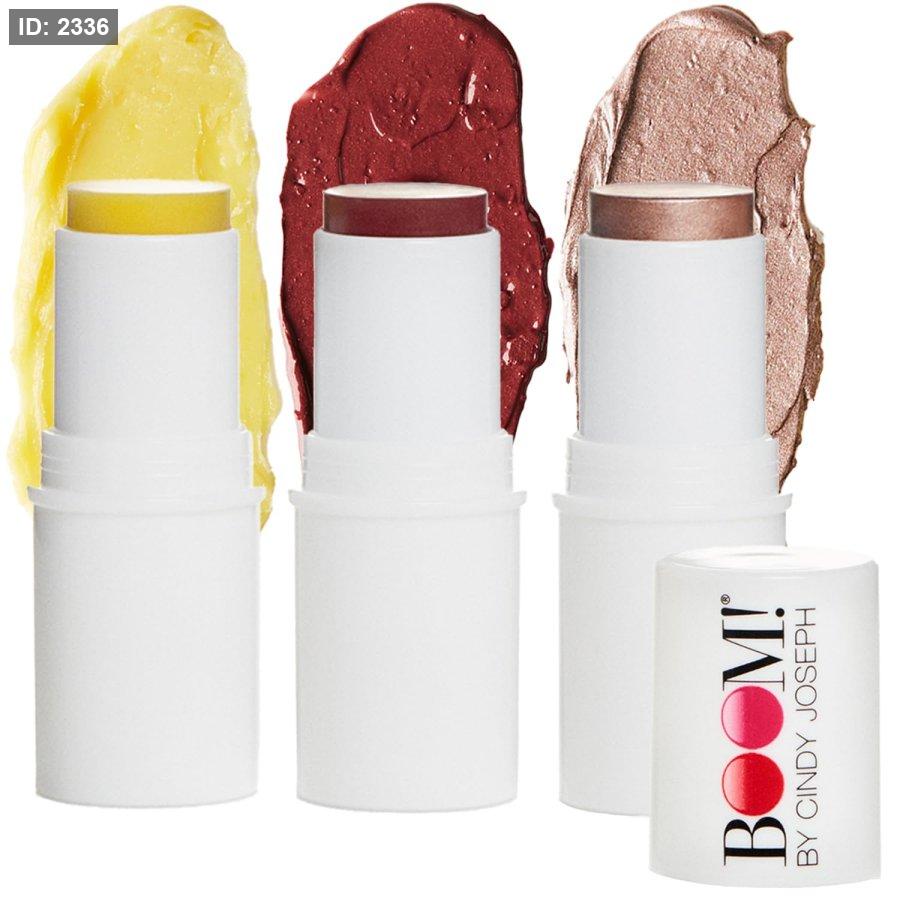 BOOM! by Cindy Joseph Boomstick Trio 3 Pack مجموعة مكونة من 3 عصي مكياج متعددة الاستخدامات، مصممة لتقديم مظهر طبيعي وبسيط يناسب جميع أنواع البشرة وألوانها.