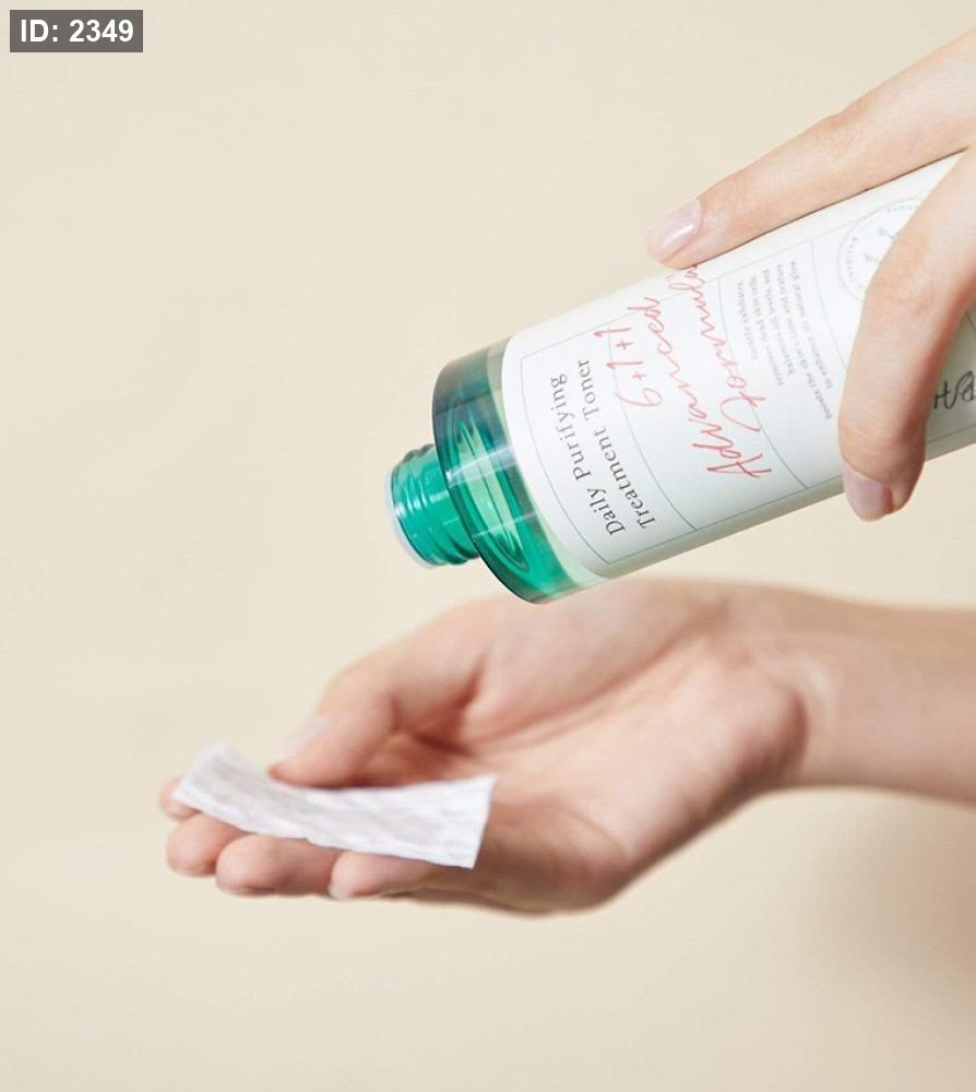 •بعد تنظيف الوجه، ضعي كمية مناسبة من التونر على قطعة قطنية أو على راحة يدك.