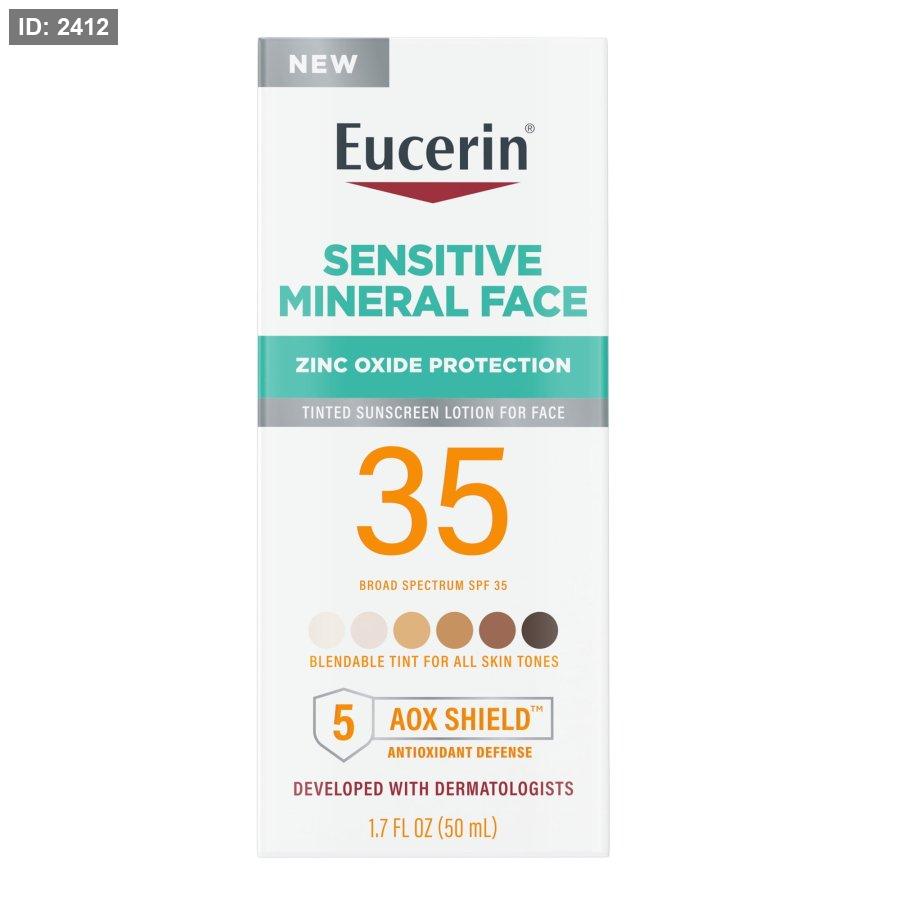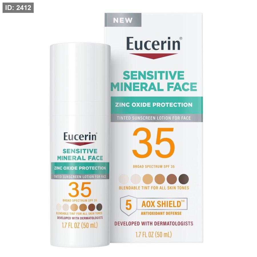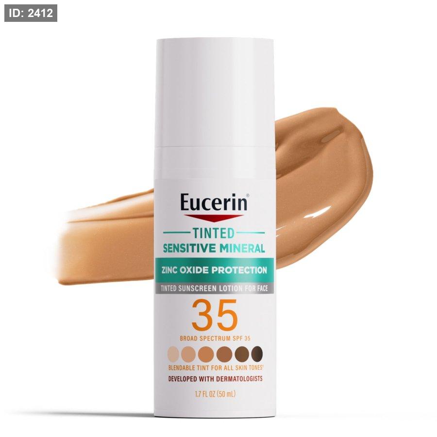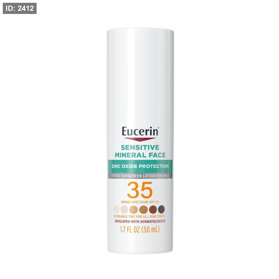 Eucerin Sun Tinted Mineral Face Sunscreen SPF 35 واقي شمس ملون يوفر حماية من أشعة الشمس مع تغطية خفيفة.