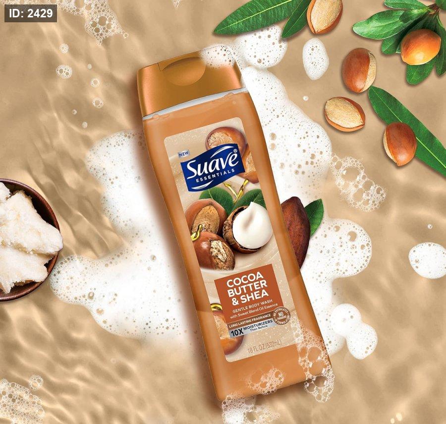 Suave Essentials Gentle Body Wash, Cocoa Butter & Shea غسول جسم لطيف يعطر الجسم ويمنحه ترطيبًا عميقًا بفضل مكوناته الطبيعية.