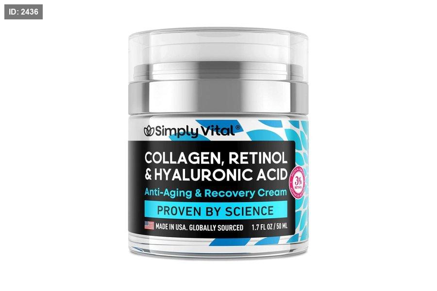SimplyVital Collagen, Retinol & Hyaluronic Acid Cream كريم مرطب مضاد للشيخوخة يحتوي على الكولاجين، الريتينول، وحمض الهيالورونيك.