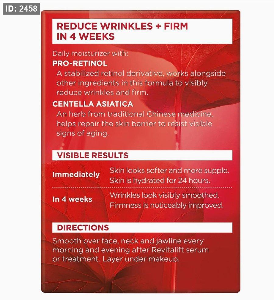 منتج L’Oréal Revitalift Face & Neck Anti-Wrinkle & Firming Moisturizer Day كريم نهاري مصمم لترطيب البشرة ومكافحة علامات التقدم في العمر، مع تحسين مرونة الجلد.
