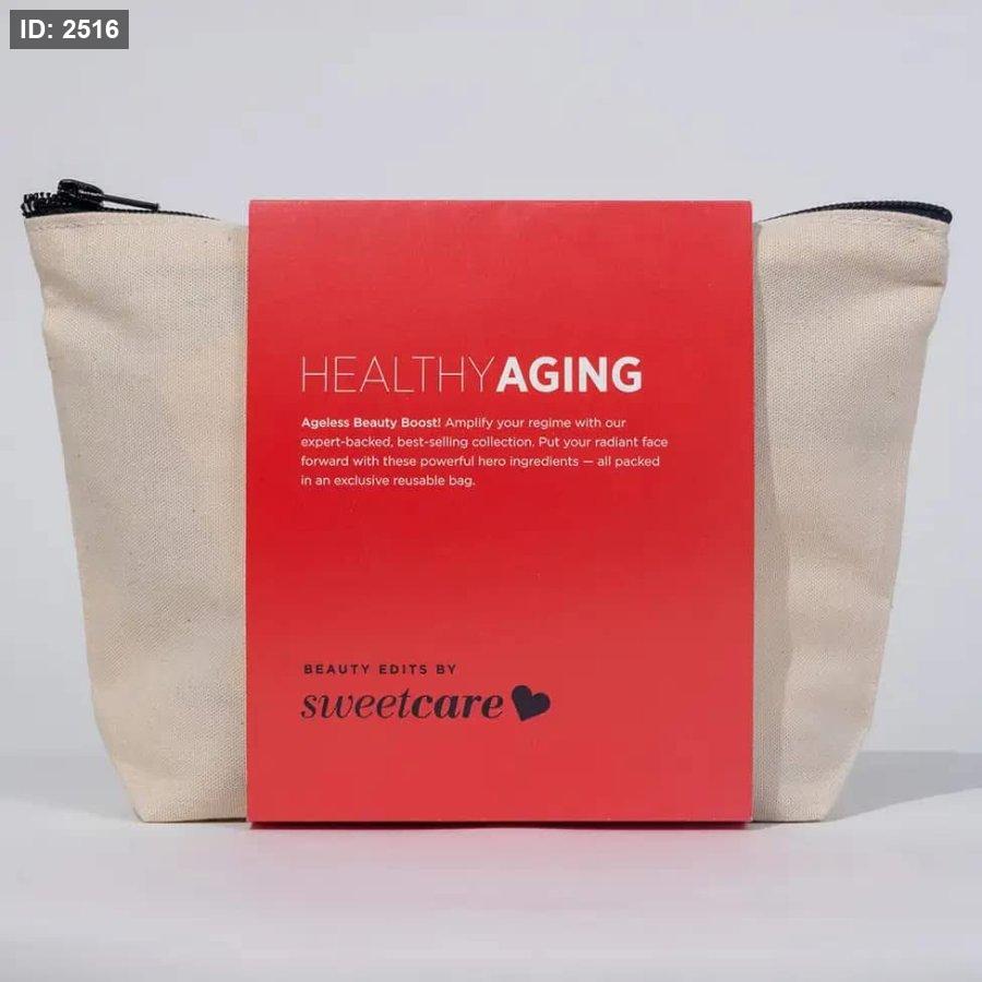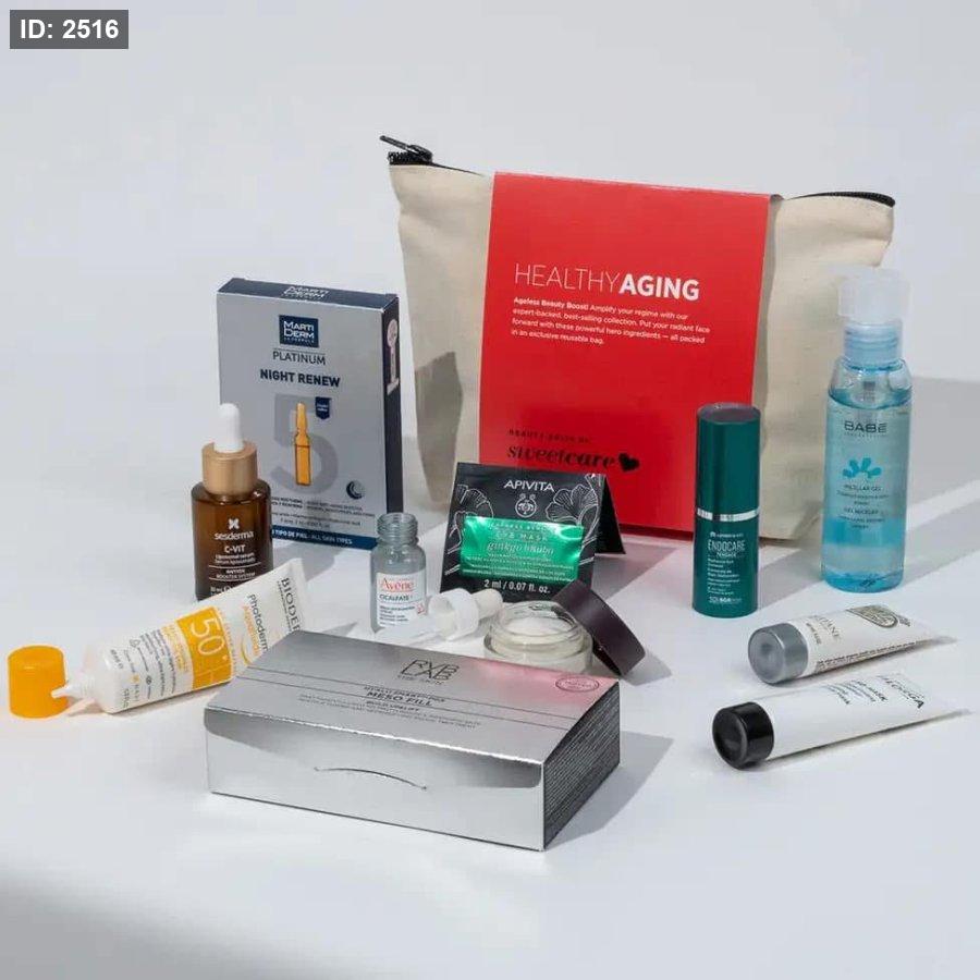 حقيبة تحتوي على مجموعة مختارة من منتجات العناية بالبشرة تحت عنوان Healthy Aging، وهي مخصصة لتحسين روتين العناية بالبشرة مع التركيز على مكافحة علامات التقدم في السن.