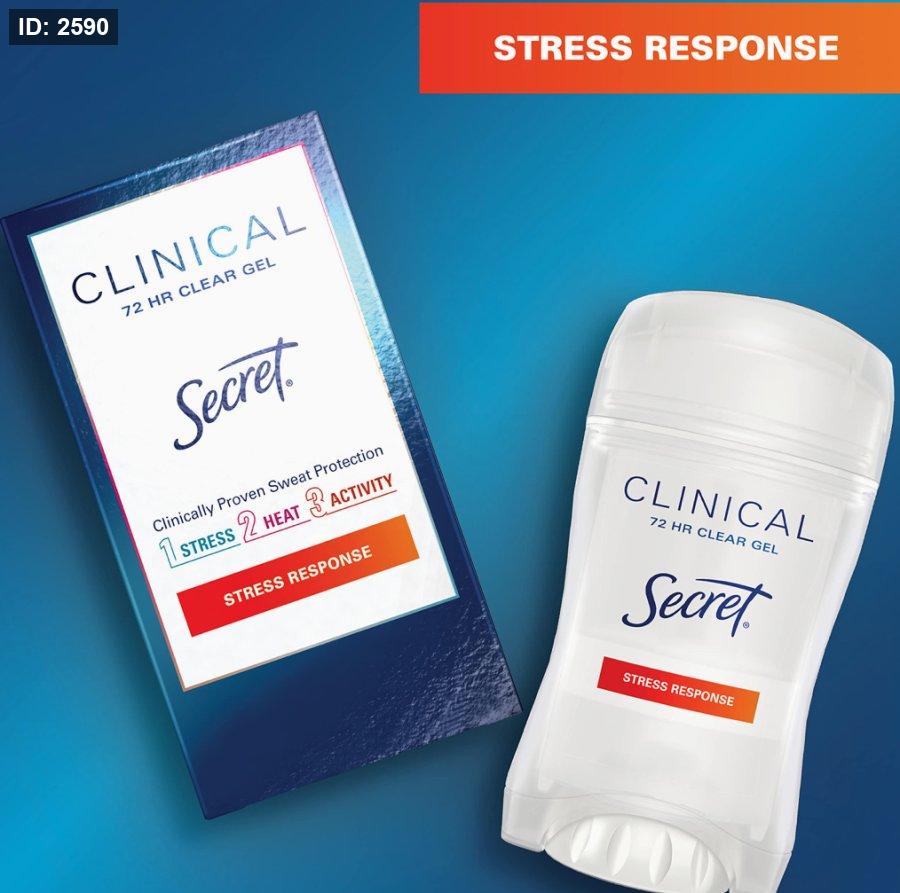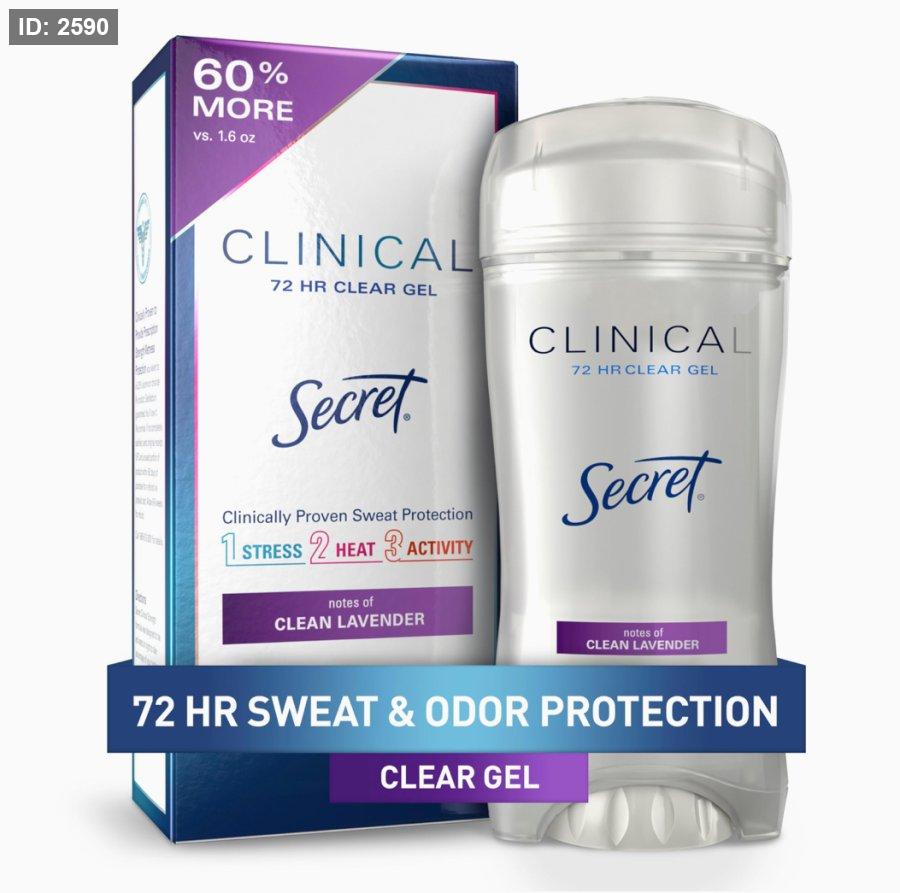 مجموعة من مزيلات العرق Secret Clinical Strength، وهي مصممة لتوفير حماية فائقة تدوم حتى 72 ساعة ضد التعرق والرائحة.