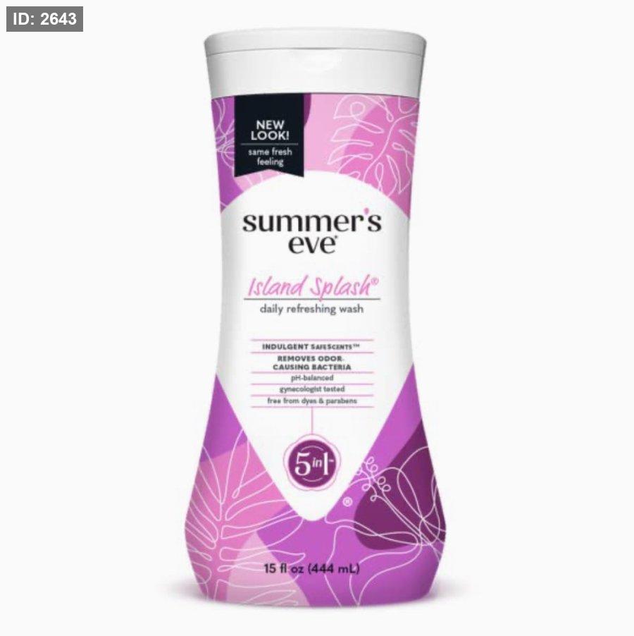 غسول Summer’s Eve Island Splash غسول نسائي متوازن الحموضة (pH) ينظف بلطف ويزيل الروائح غير المرغوبة لمنح انتعاش يدوم حتى 24 ساعة.