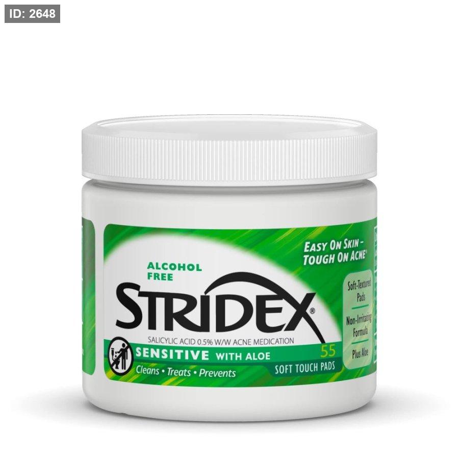 ستريدكس مسحات قطنية بالصبار هي مناديل مبللة خالية من الكحول مصممة للبشرة الحساسة لمكافحة حب الشباب بلطف.