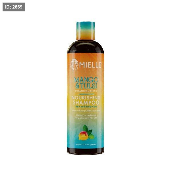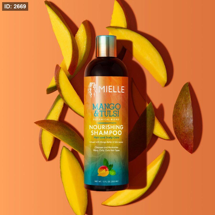 شامبو Mielle Mango & Tulsi المغذي، وهو مصمم للعناية بالشعر وفروة الرأس.