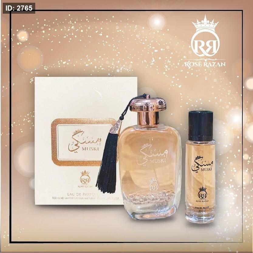 عطر مسكي حجم ١٠٠ مل و عطر للشعر حجم ٣٠ مل.