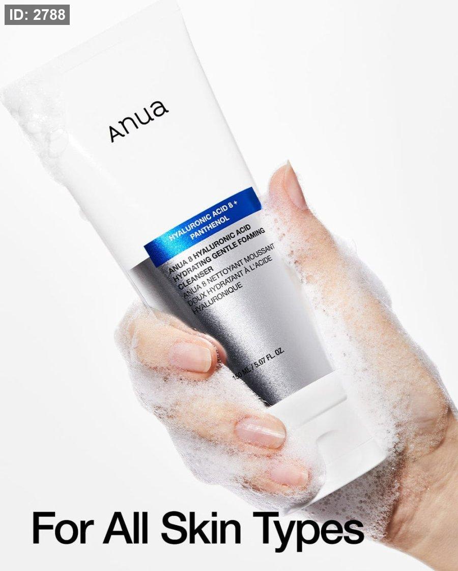 غسول أنوا يحتوي على 8 أنواع مختلفة من حمض الهيالورونيك، وهو مصمم لتنظيف البشرة بلطف دون أن يسبب جفافها.