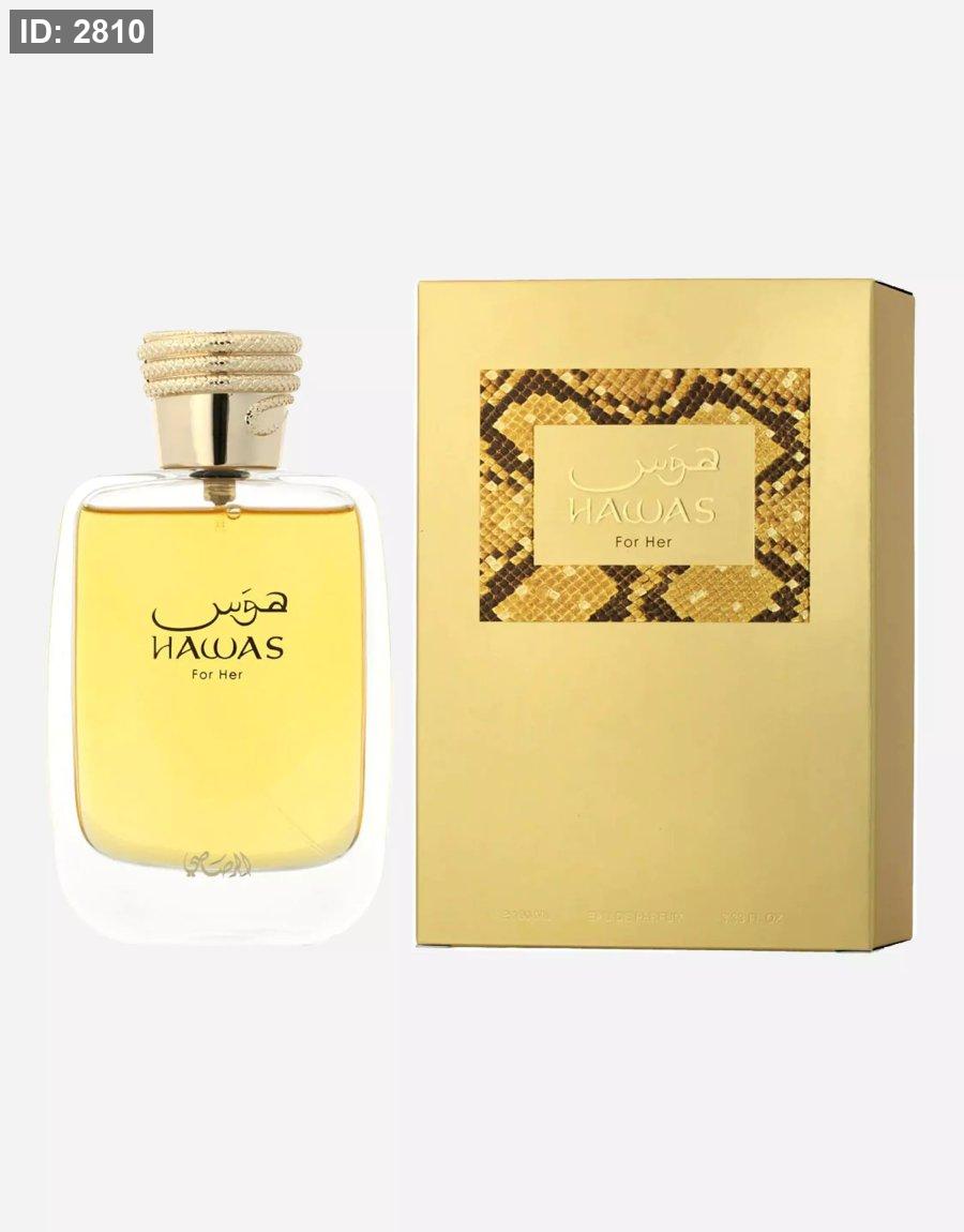 Hawas for Her من Rasasi عطر شرقي-زهري أنثوي جذاب، يجمع بين الأناقة العربية واللمسة العصرية.