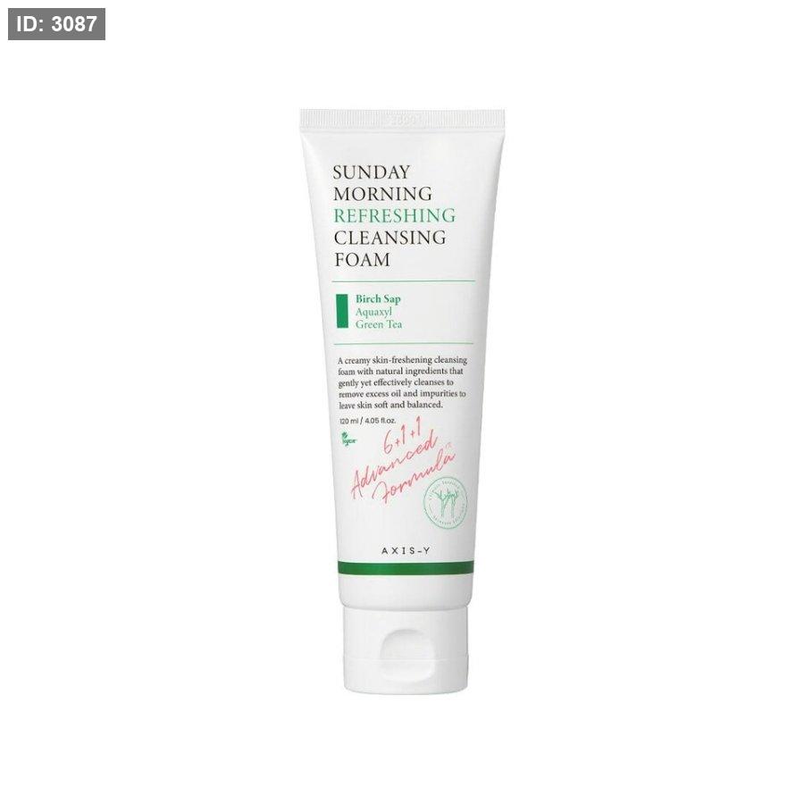 غسول Sunday Morning من AXIS-Y هو الحل المثالي لتنظيف لطيف وفعّال بتركيبة نباتية تحتوي على ماء شجرة البتولا، الشاي الأخضر، وAquaxyl لترطيب وتنقية البشرة من الشوائب والزيوت دون أن يسبب جفاف.