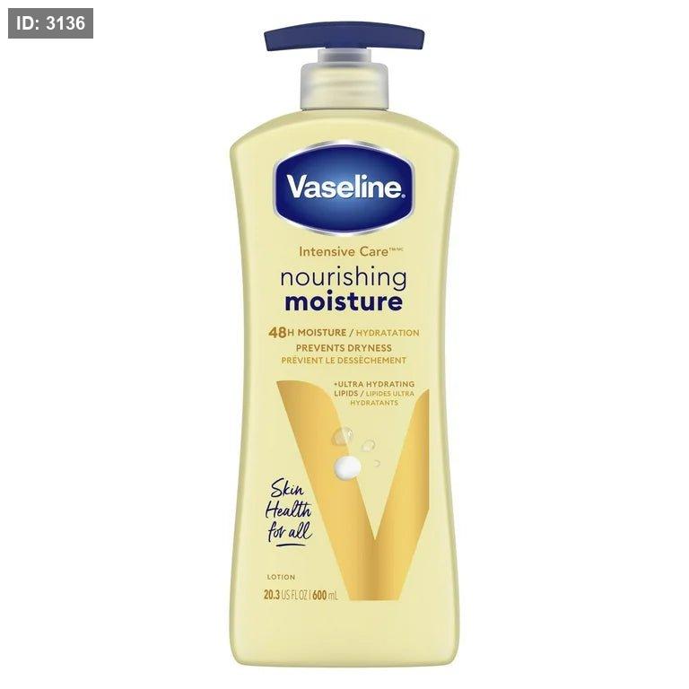 Vaseline Intensive Care Nourishing Moisture لوشن غني مصمم لترطيب البشرة الجافة والعادية بفعالية.
