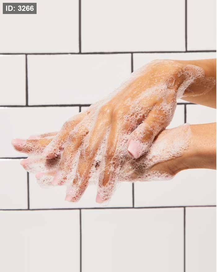 - ضعي كمية مناسبة من الغسول على اليدين.