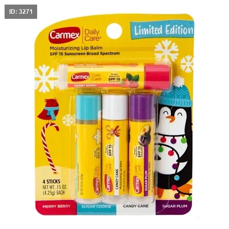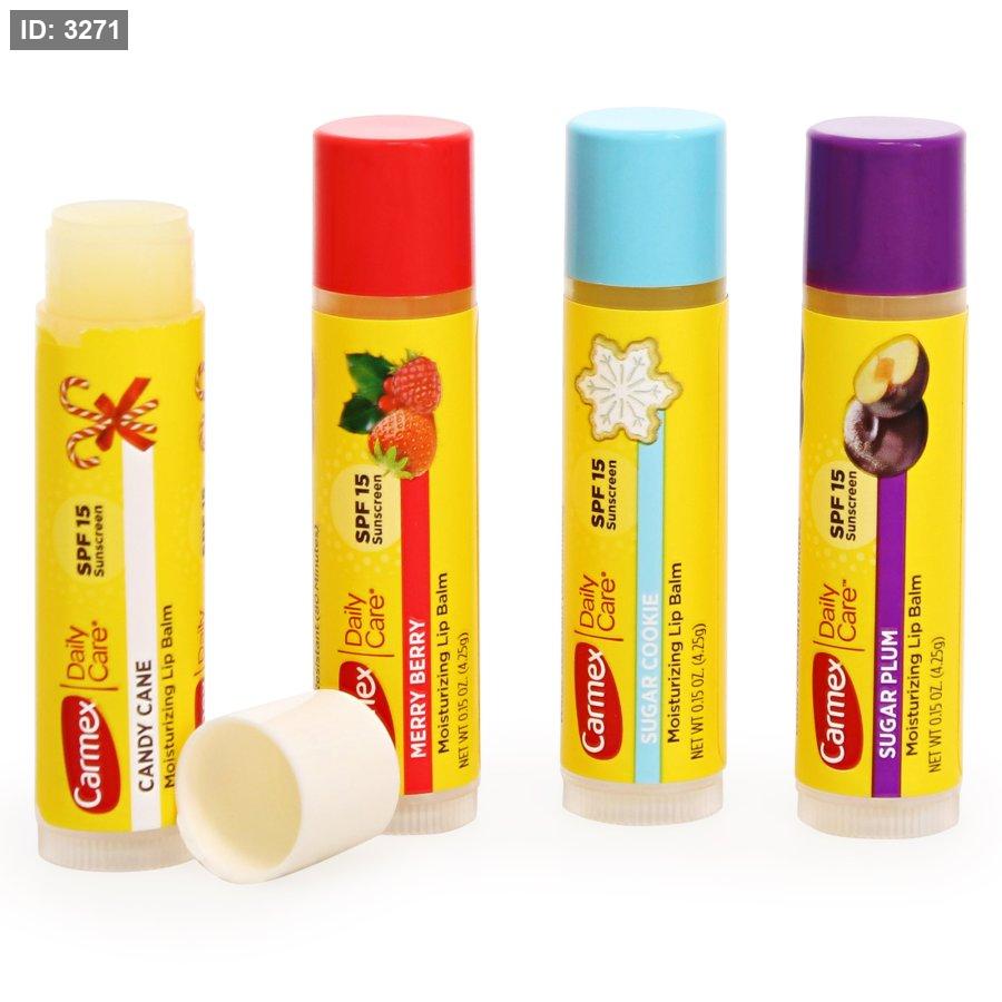 مرطبات شفاه يومية من "كارمكس" (Carmex) تأتي بإصدار بأربع نكهات مميزة، تحتوي على واقي شمس SPF 15 وتحمي الشفاه من الجفاف والتشقق، مع تركيبة مرطبة لطيفة تناسب المناخ البارد والحار.