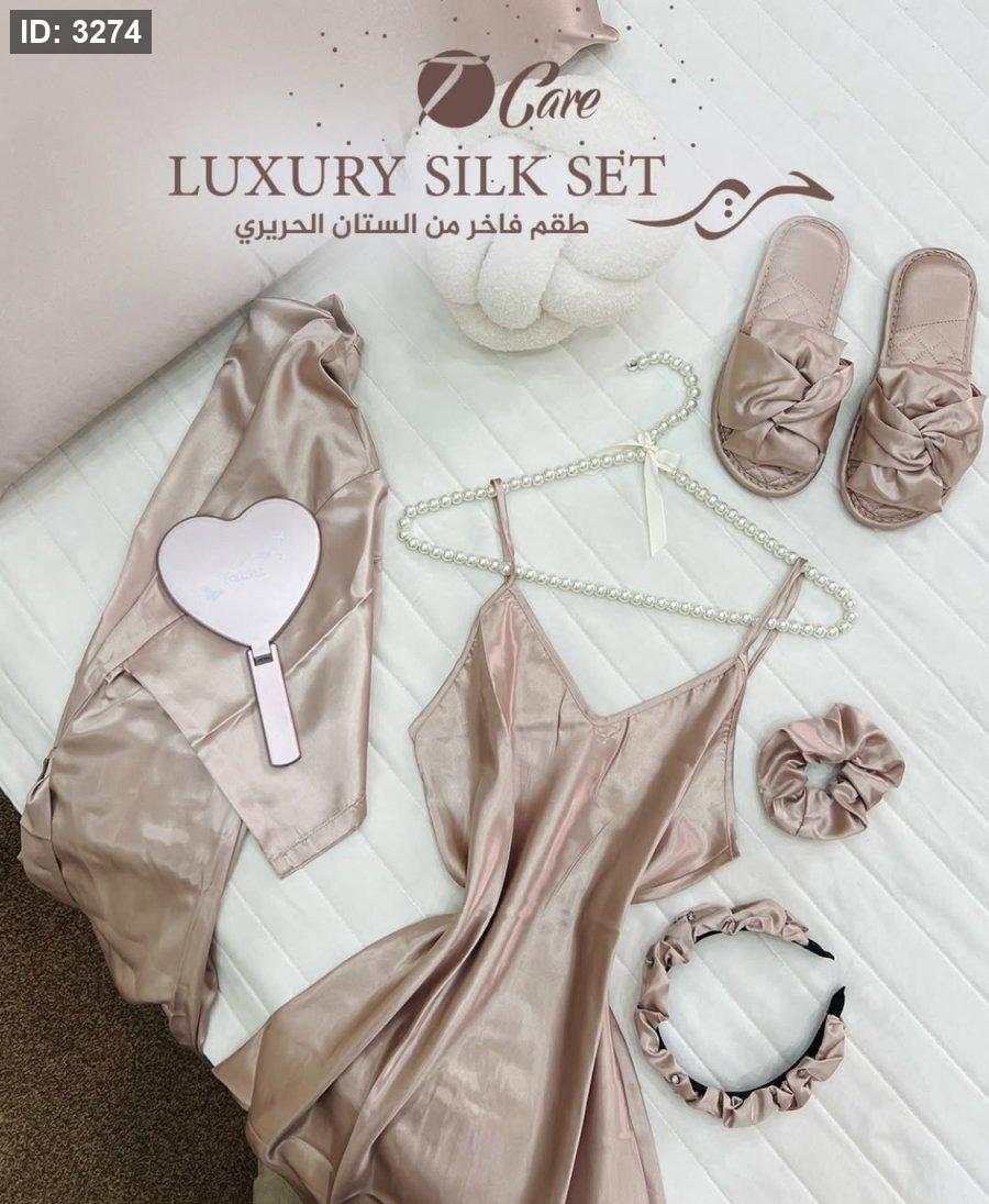 استمتعي بإطلالة فاخرة مع طقم الستان الحريري، الاختيار المثالي لكل امرأة تبحث عن الأناقة والراحة