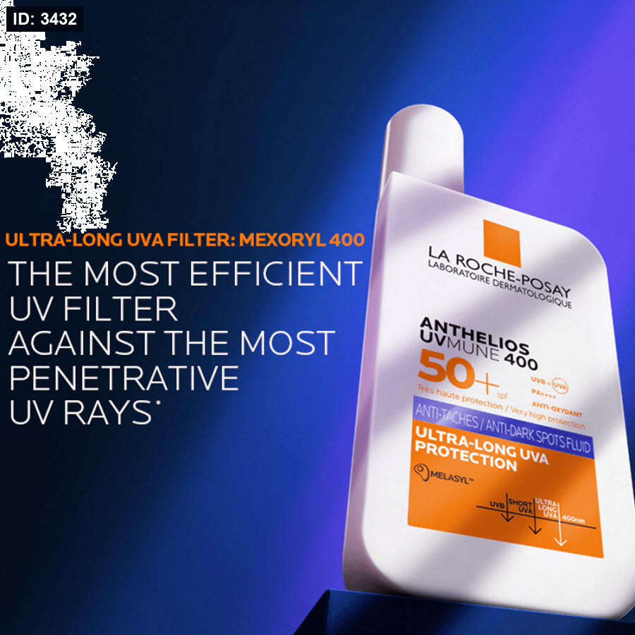 مكسوريل 400 (Mexoryl 400): هذا هو الفلتر الثوري الجديد والحصري من لاروش بوزيه. يوفر حماية غير مسبوقة ضد الأشعة فوق البنفسجية الطويلة جدًا (Ultra-long UVA) والتي تتراوح أطوالها الموجية بين 380 و 400 نانومتر، وهي الأشعة التي كانت يصعب حجبها بالفلترات التقليدية. هذه الأشعة تساهم بشكل كبير في شيخوخة الجلد المبكرة وتلف الخلايا وتصبغ البشرة.