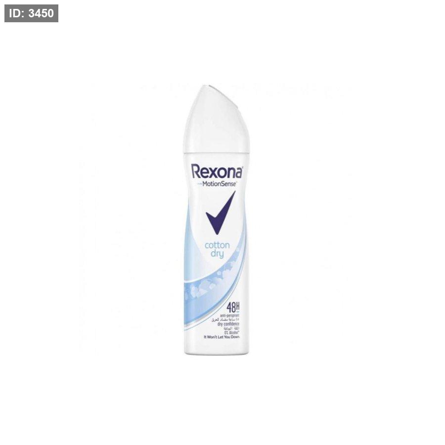 بخاخ مزيل عرق ومضاد للتعرق من ريكسونا، بتقنية "موشن سينس" التي يُفترض أنها توفر حماية كلما تحركت أكثر. يتميز برائحة "القطن الجاف" التي تمنح شعوراً بالانتعاش والنظافة. يوفر حماية لمدة 48 ساعة ضد التعرق والرائحة، ويذكر أنه خالٍ من الكحول ("0% alcohol"). وهو مصمم ليمنحك الثقة الجافة طوال اليوم.