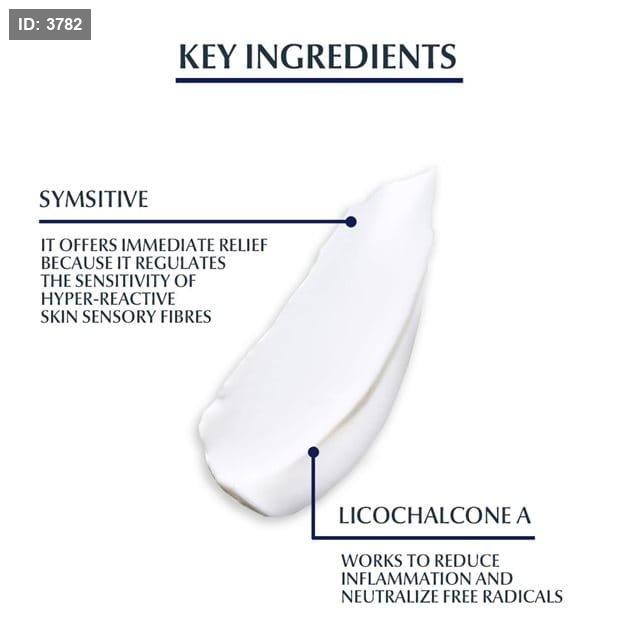 يحتوي على تقنية SymSitive الفعّالة التي تعمل على تهدئة البشرة فورًا وتقليل الانزعاج مثل الحكة، الاحمرار، والحرقة.