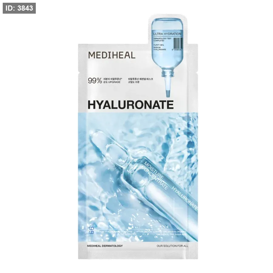 امنحي بشرتك جرعة فورية من الترطيب مع Mediheal Hyaluronate Mask! غني بمركّز حمض الهيالورونيك النقي بنسبة 99%، يعمل على ترطيب البشرة بعمق، تهدئتها، ومنحها إشراقة طبيعية ونضارة صحية. قناع مثالي لإعادة التوازن والرطوبة لبشرتك في جلسة عناية منزلية سهلة وسريعة.