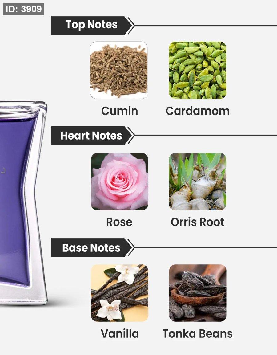 القلب (Heart Notes): الورد، السوسن، الهيل الأخضر.
