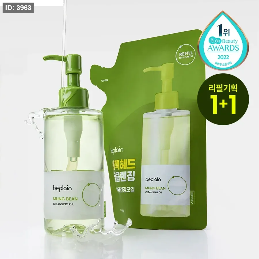 Beplain Mung Bean Cleansing Oil زيت تنظيف فاخر حائز على جوائز، يعمل بفعالية على إزالة المكياج المقاوم للماء، الشوائب، والزيوت الزائدة من البشرة.
