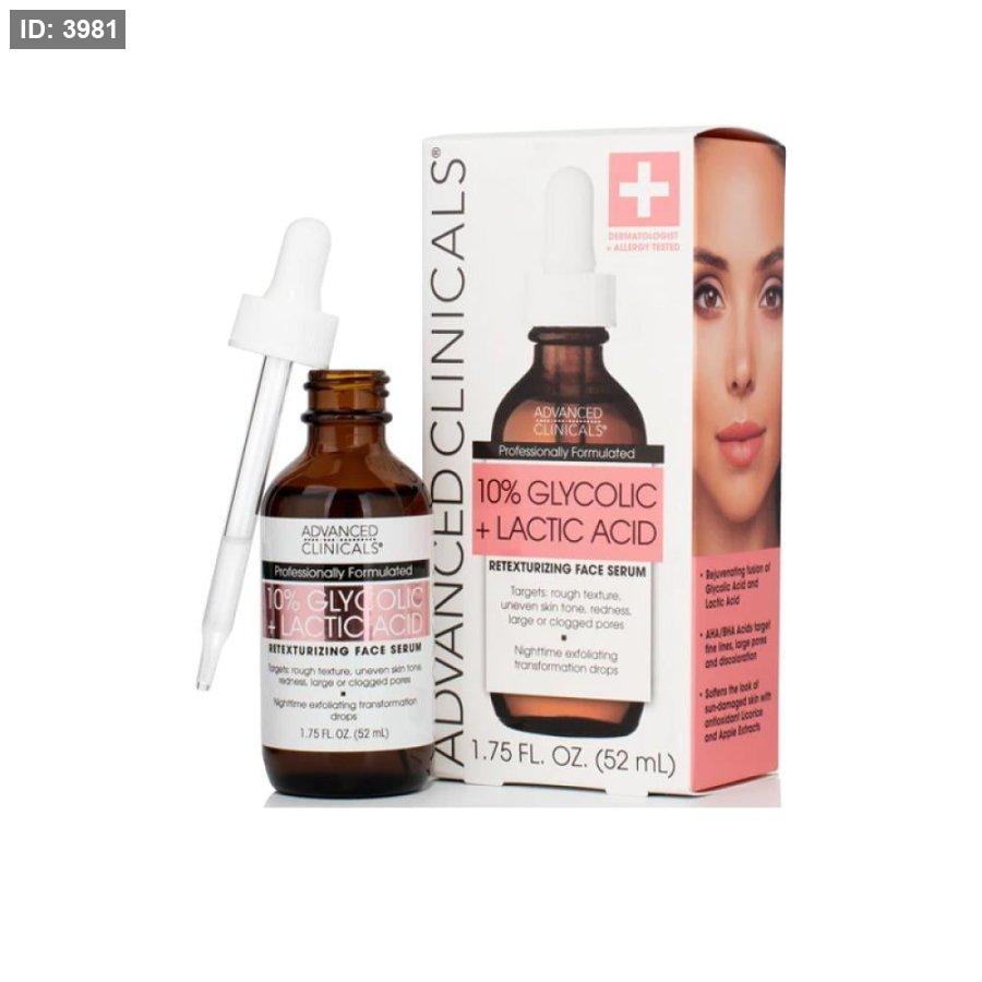 احصلي على بشرة أكثر نعومة وإشراقة مع Advanced Clinicals Glycolic + Lactic Acid Serum.