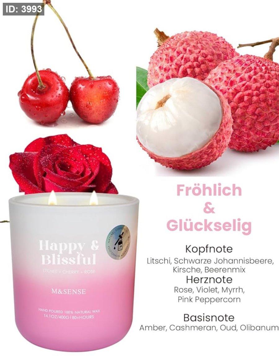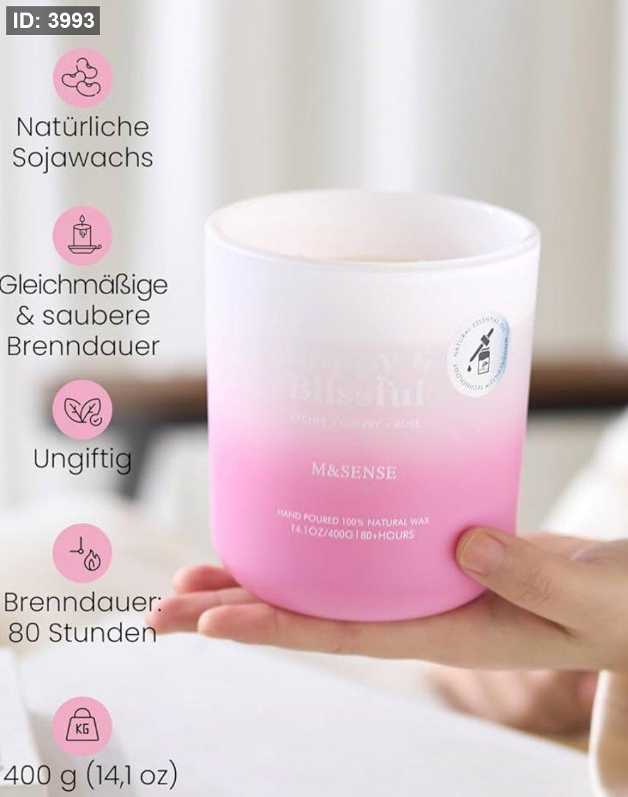 انشري أجواء من السعادة والراحة مع شمعة M&SENSE Happy & Blissful، مزيج فاخر يجمع بين حلاوة الليتشي، نضارة الكرز، ورقة الورد. تصميمها الأنيق باللون الوردي المتدرج مع غطاء خشبي يجعلها قطعة مثالية لتزيين المنزل أو كهديّة أنيقة تضفي لمسة من الفخامة على أي مناسبة.