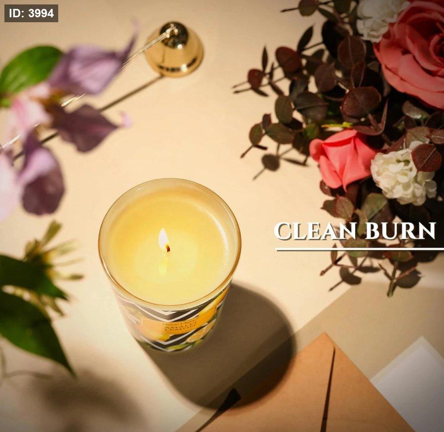 تصميم الكوب الأنيق برسومات الليمون والزهور يجعلها إضافة مثالية لديكور منزلك أو هدية أنيقة لمحبي الروائح الحمضية الطبيعية.