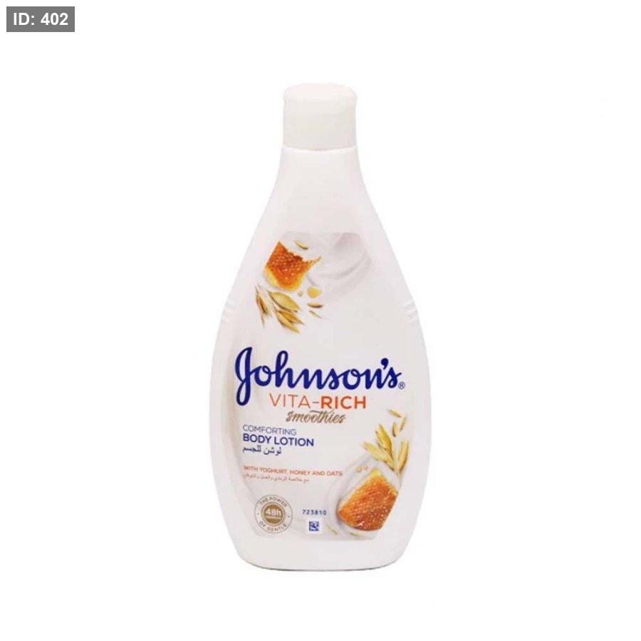 لوشن جونسونVita-Rich للجسم ذو الترطيب المكثف لأنه غني بخلاصة الزبادي والعسل والشوفان التي تساهم في ترطيب البشرة وتفتيحها. ملمسه غير دهني وسريع الامتصاص تغذي الجسم وتمنح البشرة ملمسًا حريريًا لفترة طويلة