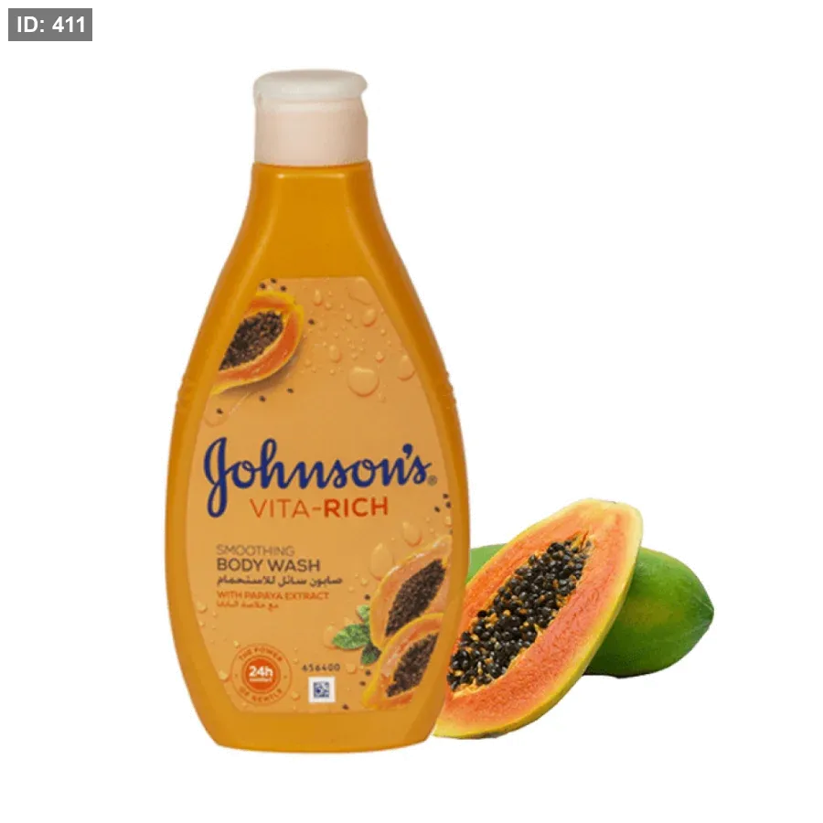 غسول الجسم الملطف فيتا - ريتش من جونسون تمنح البشرة الجافة ترطيبًا يدوم طويلًا. مجموعة غنية بالبابايا والجليسرين لتقشير وتوحيد لون البشرة. مجموعة غنية بالجليسرين المُرطب تتمتع بتركيبة توفر الراحة على مدار 24 ساعة. يعمل البابايا على تعزيز الحيوية وتقشير الجلد الميت. كما يُهدئ سطح البشرة مما يجعلها رطبة وناعمة.