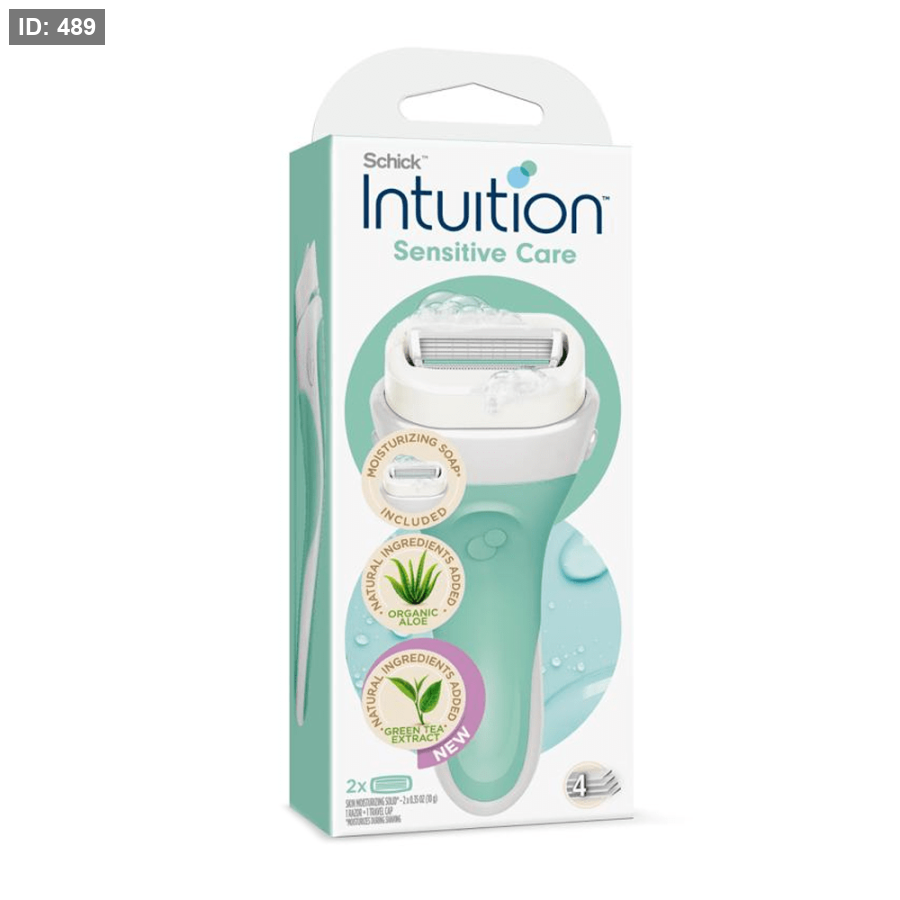 شيك انتيوشن شفرة حلاقة بخلاصة الصبار والشاي الأخضر - مقبض + رأسين للنساء - Schick Intuition Sensitive Care Aloevera & Green Tea Extract Shaving Razor For Women With - 1 Handle + 2 Heads
