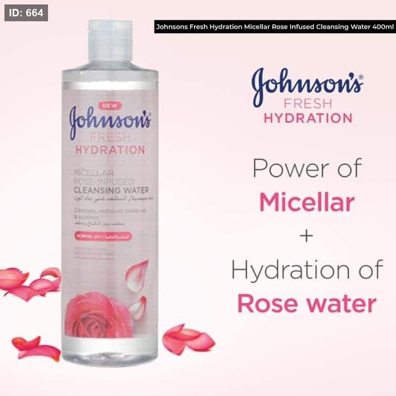 ماء ميسيلار للتنظيف من جونسون غني بماء الورد ٤٠٠مل Johnson's Micellar Rose - Infused Cleansing Water